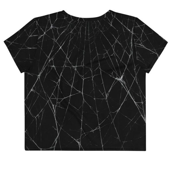 The premium mid-weight jersey feels smooth against the skin, with a two-way stretch that follows your every move—like a second, beautifully spun layer. Whether you style it with denim, leather, or your favorite dark staples, the all-over spiderweb print turns even the simplest outfit into a statement.